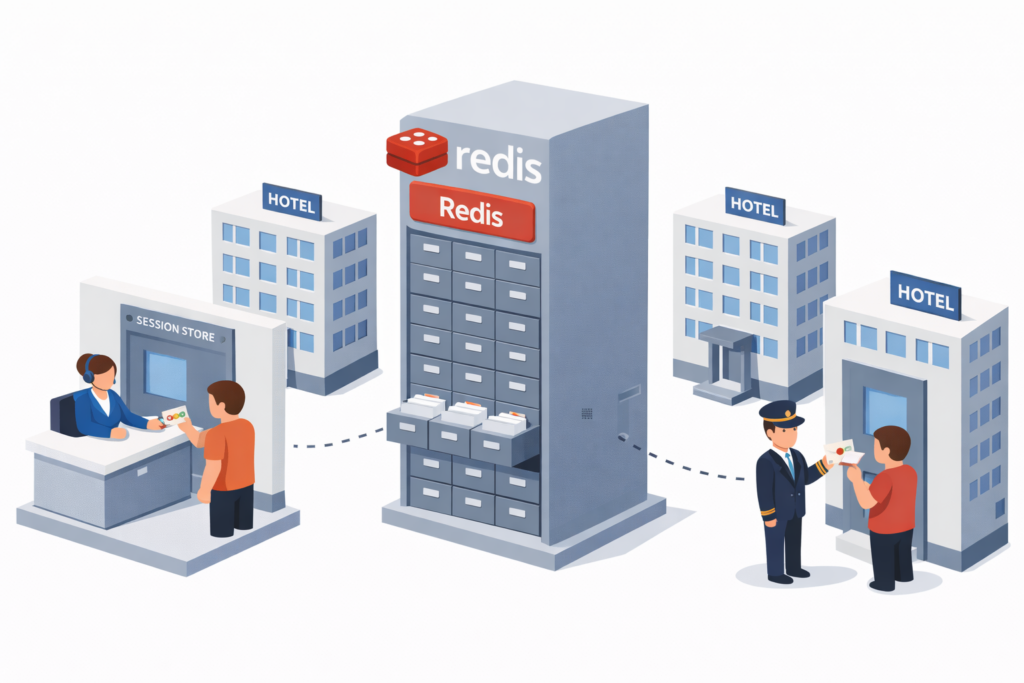 세션은 호텔 프론트의 서류함이다. 서버가 늘어나면 서류함(Redis)을 공유해야 한다.