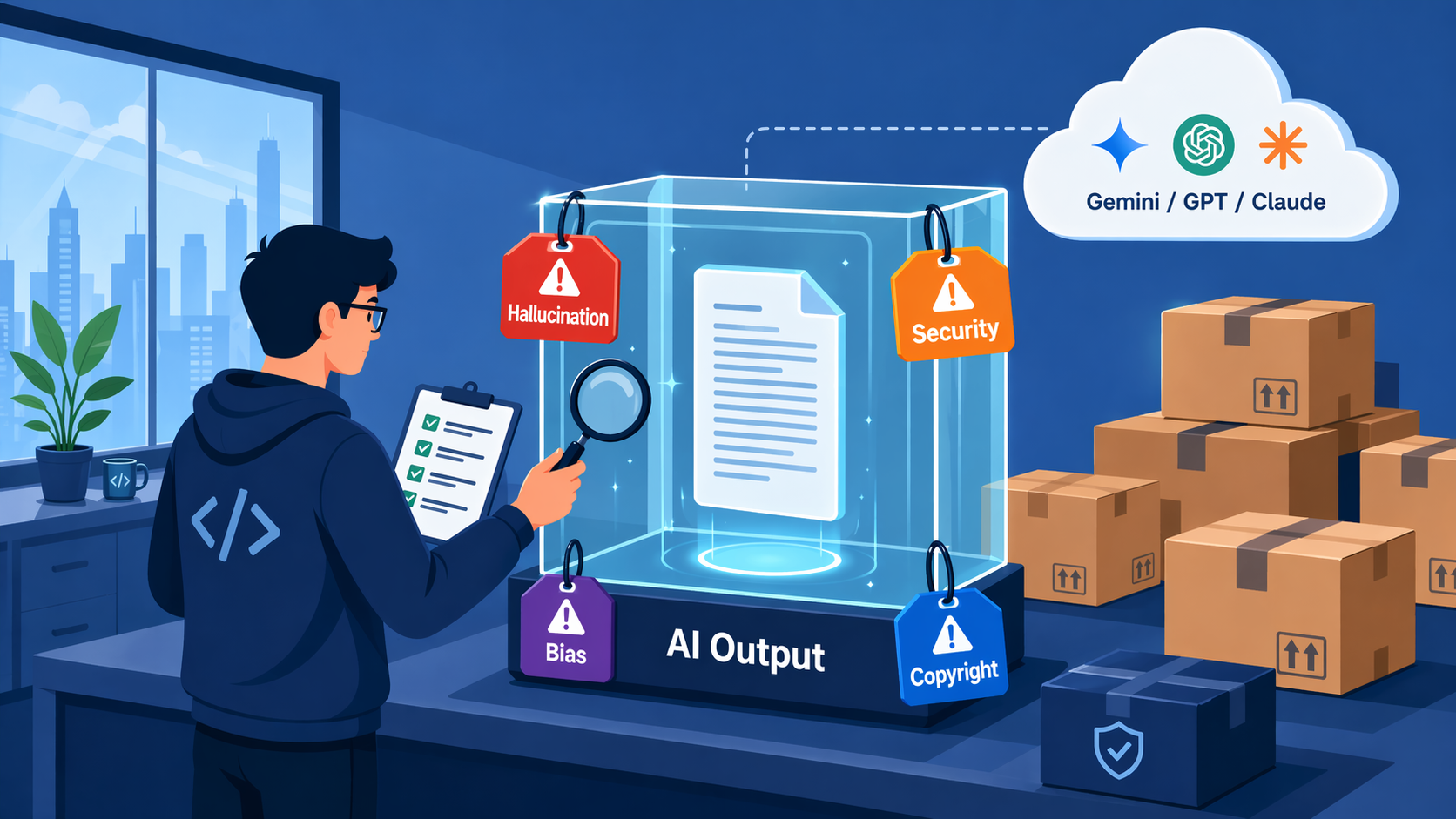 이 글은 그 마지막 책임선에 서 있는 네 가지 주제를 한 번에 본다. 환각, 보안, 편향과 윤리, 저작권.