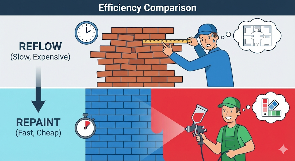 - 페인트(Paint) / 리페인트(Repaint): 계산된 위치에 실제로 ‘색을 칠한다’. (도색 작업)