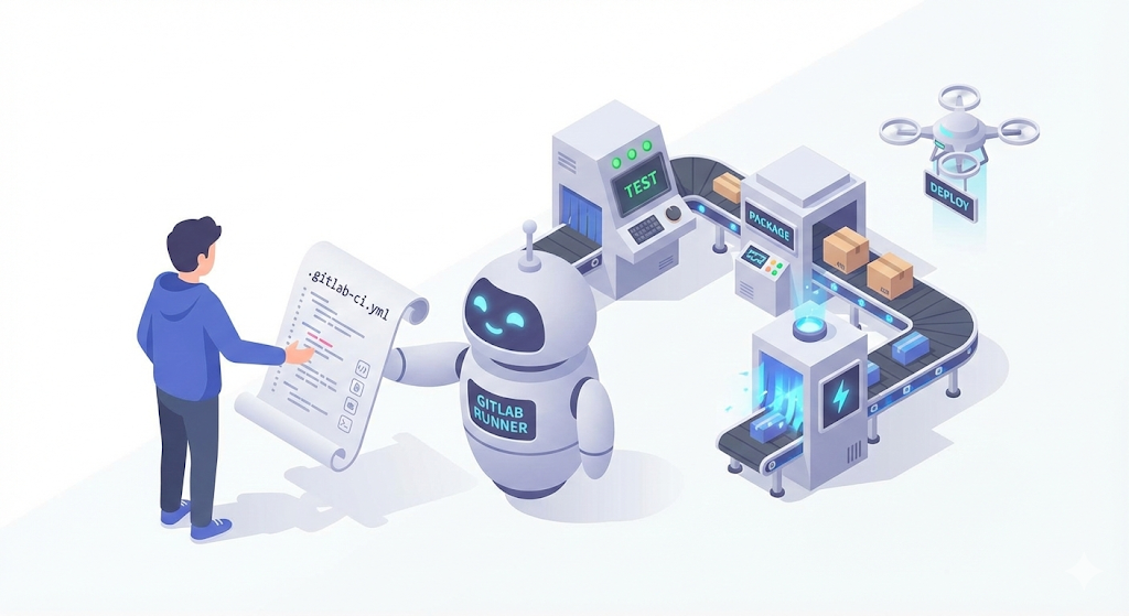 이 파일 하나만 있으면 된다. 내가 git push를 하는 순간(Trigger), GitLab은 이 지시서를 읽고 ‘GitLab Runner’라는 일꾼 로봇을 깨워 일을 시킨다.