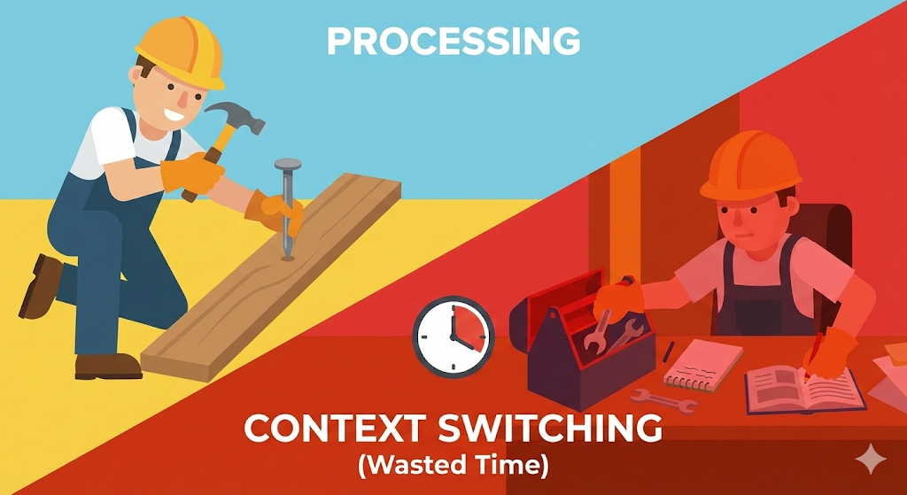 도대체 왜 일꾼을 늘렸는데 공장은 더 느려진 걸까? 그 이유를 파헤치다가 나는 운영체제의 가장 비싼 비용, ‘컨텍스트 스위칭(Context Switching)’을 마주하게 되었다.