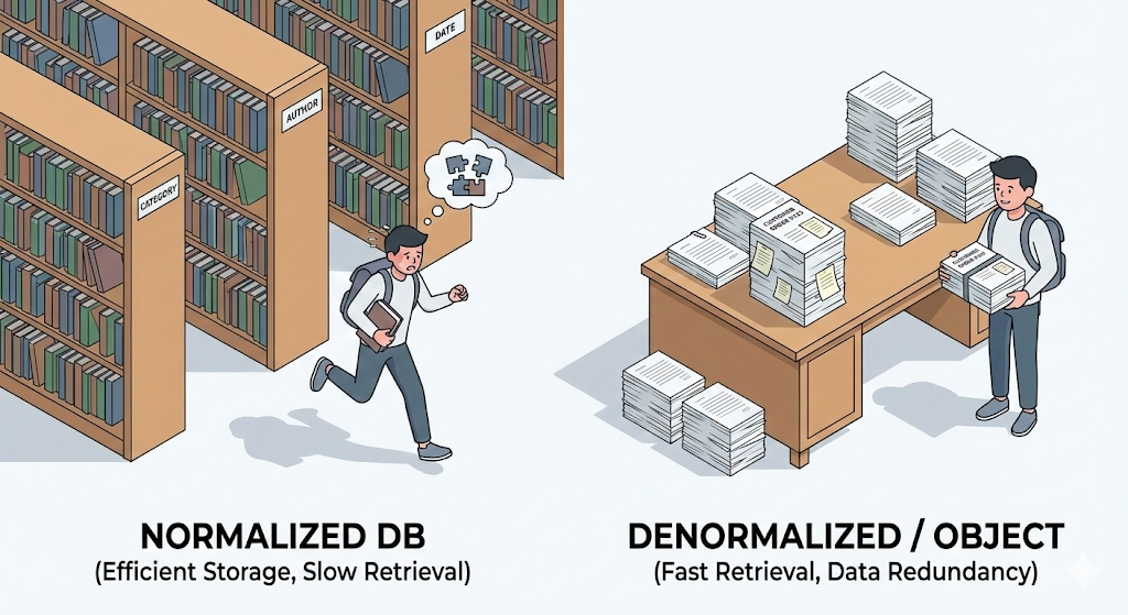대학교 데이터베이스 수업 시간, 교수님은 침을 튀기며 강조하셨다. “제1 정규형, 제2 정규형, 제3 정규형… 중복된 데이터는 저장 공간을 낭비하고 무결성을 해친다. 쪼개고 또 쪼개라!”