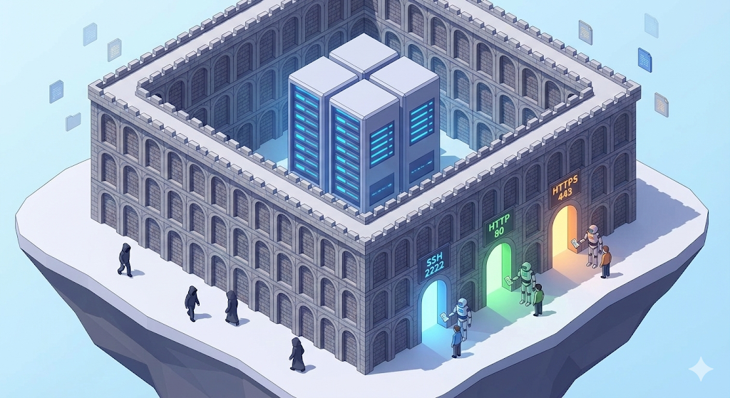 서버에는 총 65,535개의 포트(출입구)가 있다. 방화벽 없이는 이 6만 개 문이 모두 열려 있는 셈이다. 필요한 문만 열고, 나머지는 전부 잠가야 한다.